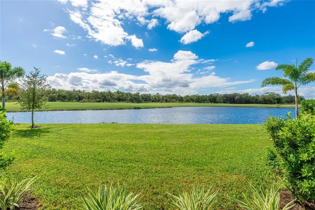 GOLF DEEDED LOT with one of the best views in the neighborhood! Welcome to your dream home in the sought-after Esplanade at Azario! This never lived in Lazio floorplan offers the perfect blend of luxury, comfort, and functionality—designed for modern living and entertaining. Located on a golf-deeded lot, this home boasts breathtaking panoramic views of both the water and golf course, providing a serene and picturesque backdrop every day. Step inside to discover a thoughtfully designed layout featuring 3 spacious bedrooms, 3 full bathrooms, a den, and an open-concept living space. The gourmet kitchen is a showstopper, featuring elegant navy cabinetry, quartz countertops, a large center island, and top-of-the-line stainless steel appliances—ideal for hosting and daily life alike. The expansive great room opens seamlessly to the covered lanai, where you can relax and soak in the beauty of your surroundings. The owner’s suite is a true retreat with a spa-like bathroom, dual vanities, and a generous walk-in closet. Enjoy all the incredible Esplanade lifestyle amenities, including the championship golf course, resort-style pool, fitness center, tennis and pickleball courts, full-service spa, Bahama Bar, culinary center and more. Don’t miss your opportunity to own this exceptional home with unmatched views and upscale finishes in one of Lakewood Ranch’s premier communities!